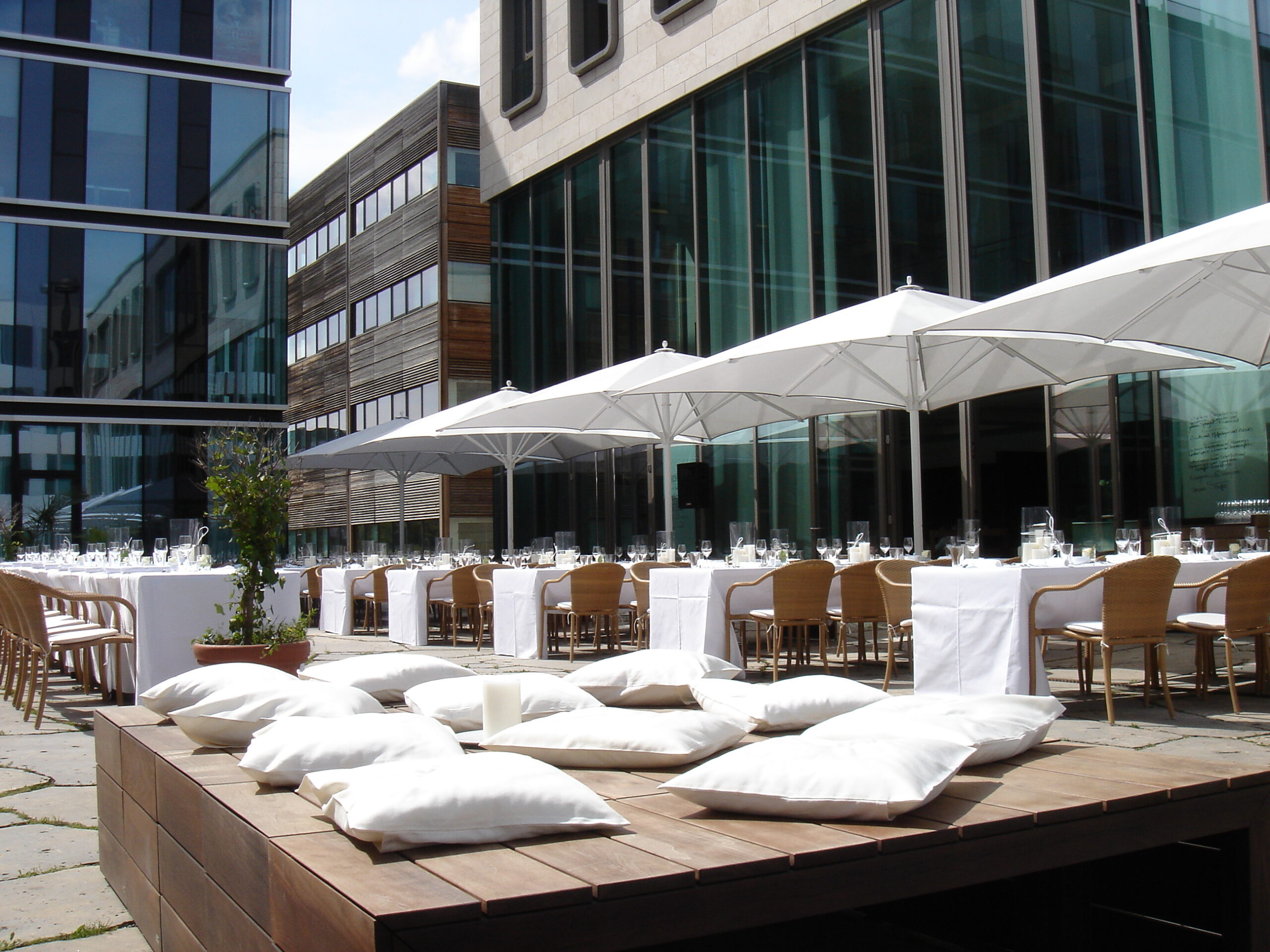 Direkt vor den Türen des Restaurants erstreckt sich unsere weitläufige Plaza. Diese großzügige Freifläche ist die perfekte Erweiterung für Ihr Event und bietet Ihnen das ganze Jahr über vielfache Möglichkeiten: